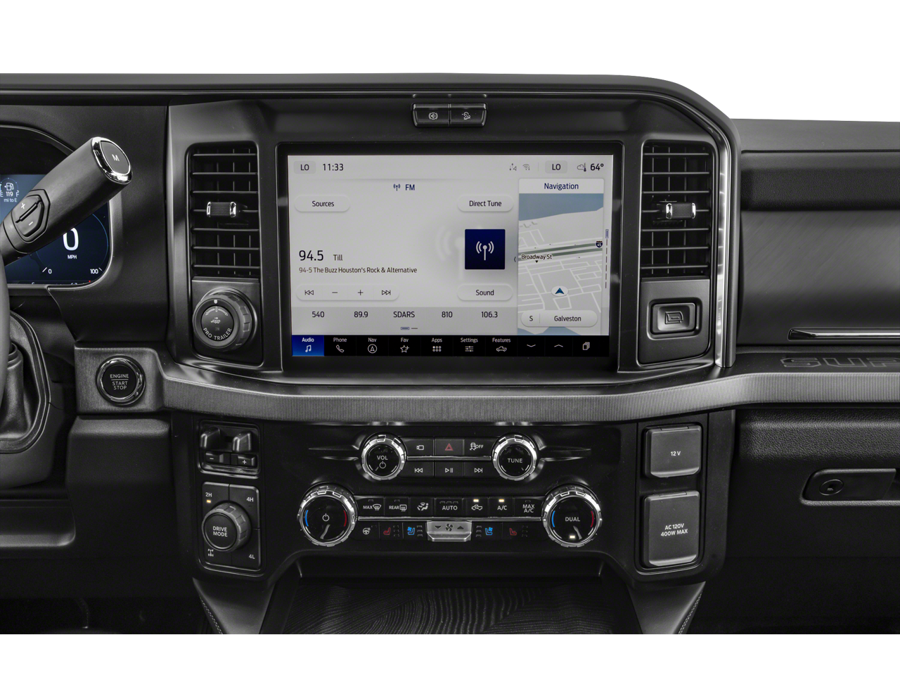 • SYNC 4 w/Enhanced Voice Recognition -inc: 12" LCD capacitive touchscreen w/swipe capability, information on demand panel, wireless phone connection, cloud connected, AppLink w/app catalog, 911 Assist, Apple CarPlay and Android Auto compatibility, digital owner's manual, conversational voice command recognition and connected navigation w/complimentary 1-year trial for eligible vehicles that begins on the new vehicle warranty start date, Customers must unlock the navigation service trial by activating the eligible vehicle w/a FordPass member account, If not subscribed by the end of the complimentary period, the connected navigation service will revert to a moving-map and active routing will no longer be available, Connected service and features depend on compatible AT&T network availability, Evolving technology/cellular networks/vehicle capability may limit functionality and prevent operation of connected features, FordPass app, compatible w/select smartphone platforms, is available via a download, Message and data rates may apply